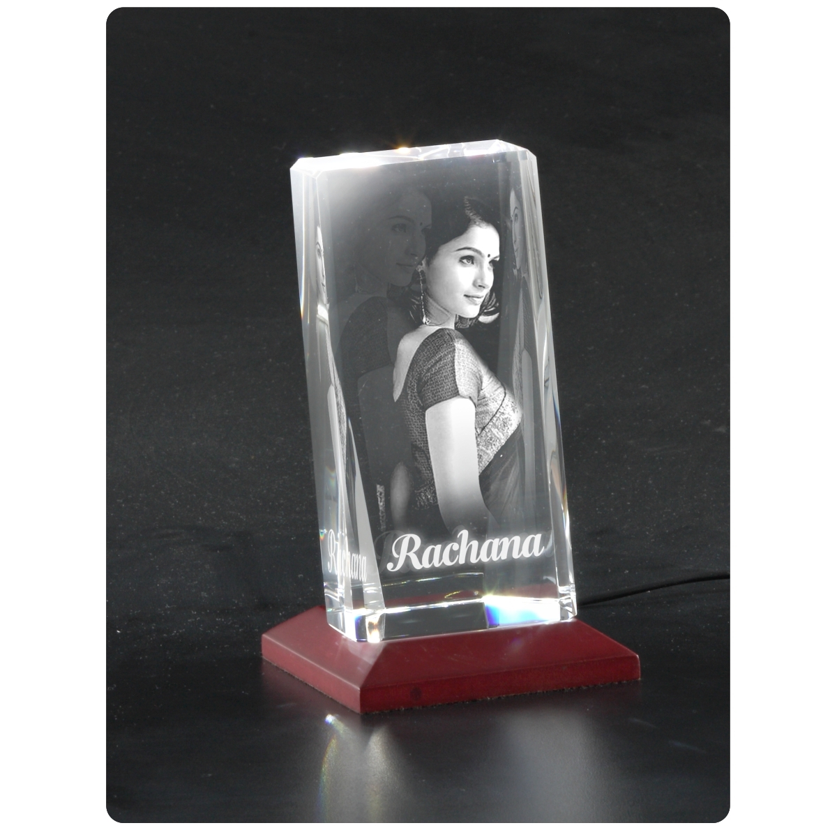 This crystal design tapers gracefully offering an elegant dimension to your gifting. The crystal comes along with a complimentary LED light base.