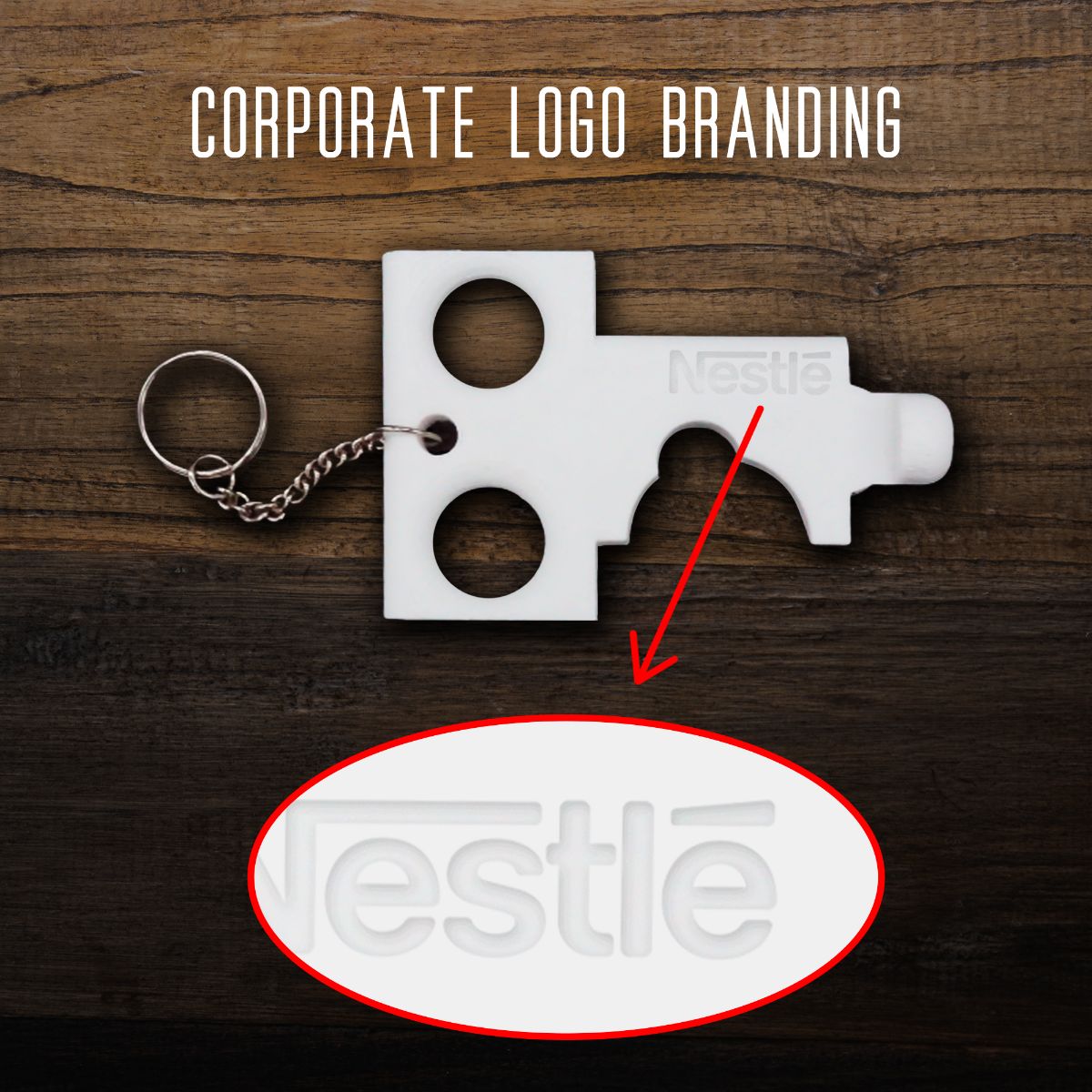 Avoid touching surfaces in public and be safe. The C-Safety Key is a multi-functional device for use in various outdoor situations. This Set of 50 pcs comes with your LOGO engraved FREE. An ideal business gift.