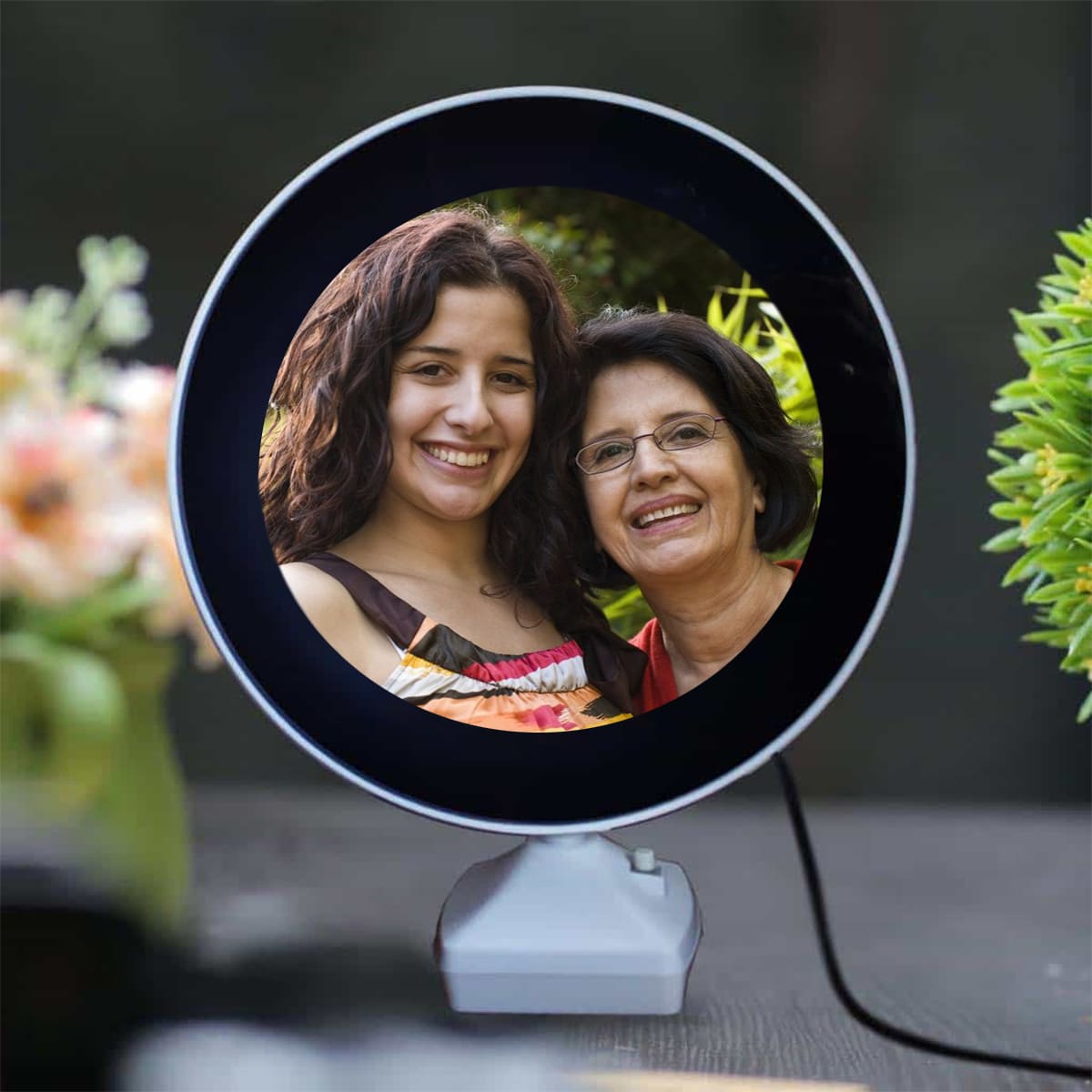 A perfect personalised 3 in 1 gift that serves the purpose of the mirror and photo frame with LED light. It can also be used as a lamp at night.