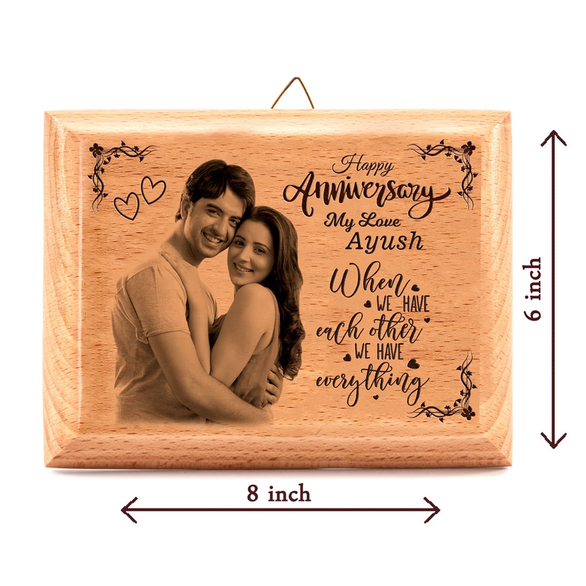 If you wish to buy personalized gifts online India, then this personalised all wooden photo frame is one of the ideal gifts online you can present on every occasion to create a lasting impression. Just upload the image and we will come back to you with the design. Size is 8 inches x 6 inches.