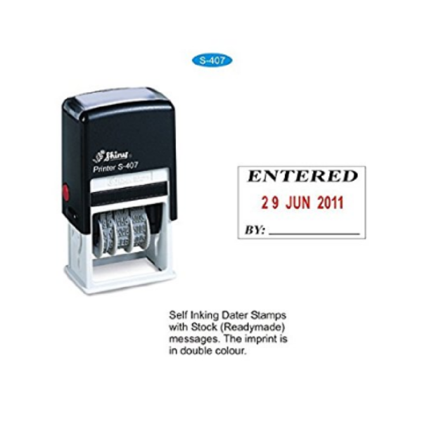 Dater with readymade “RECEIVED” stock message. Separate stamp pad required