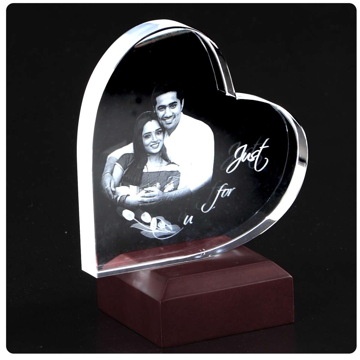 HomeLamp3D Crystal Photo Gifts Heart Shaped 3D Laser Engraved Crystal