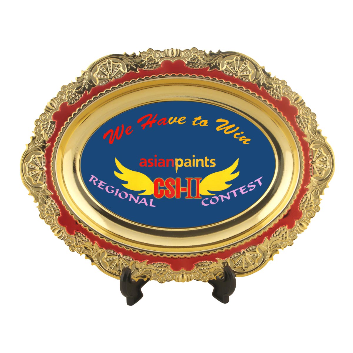 The premium quality oval shaped crest with stand is customised by high quality printing.