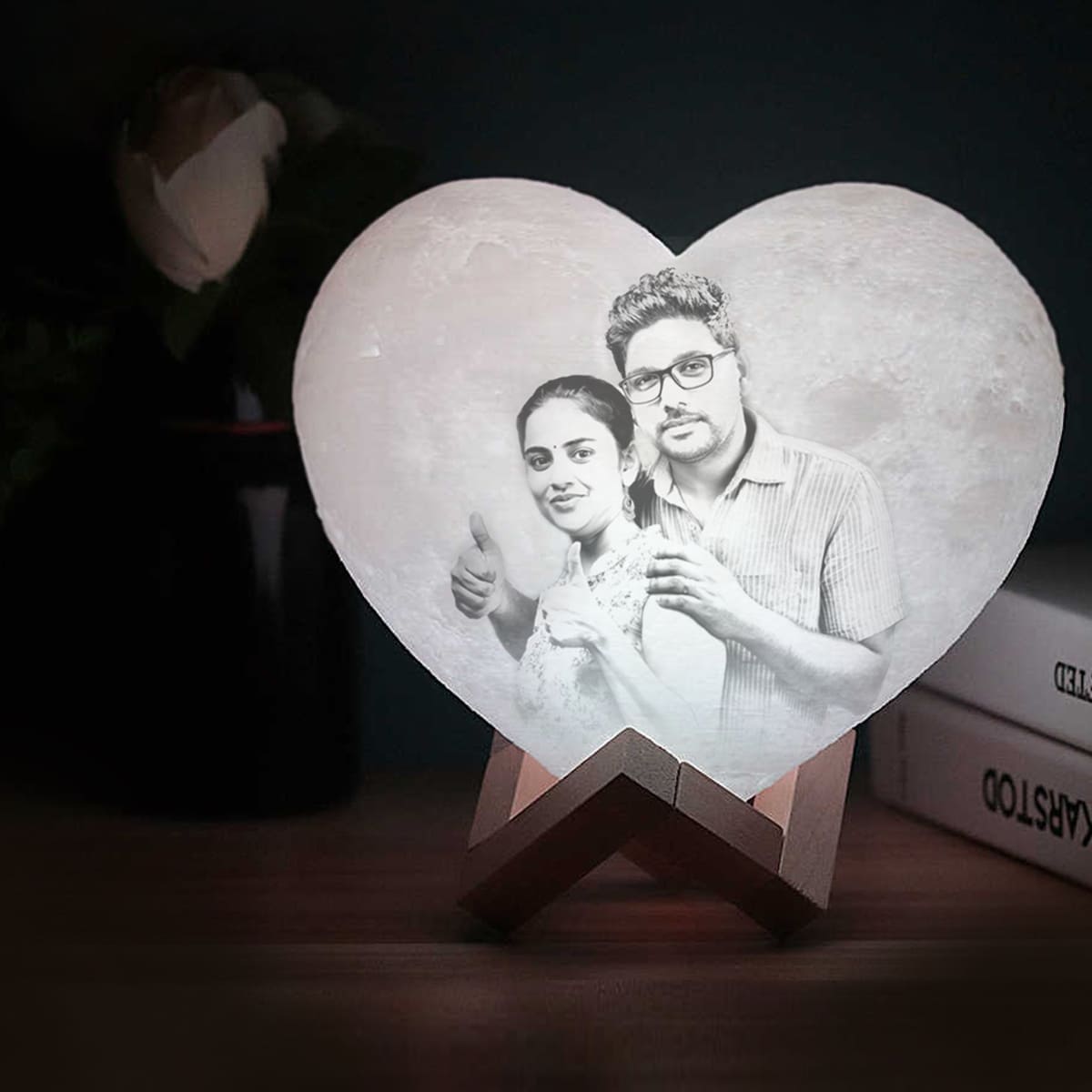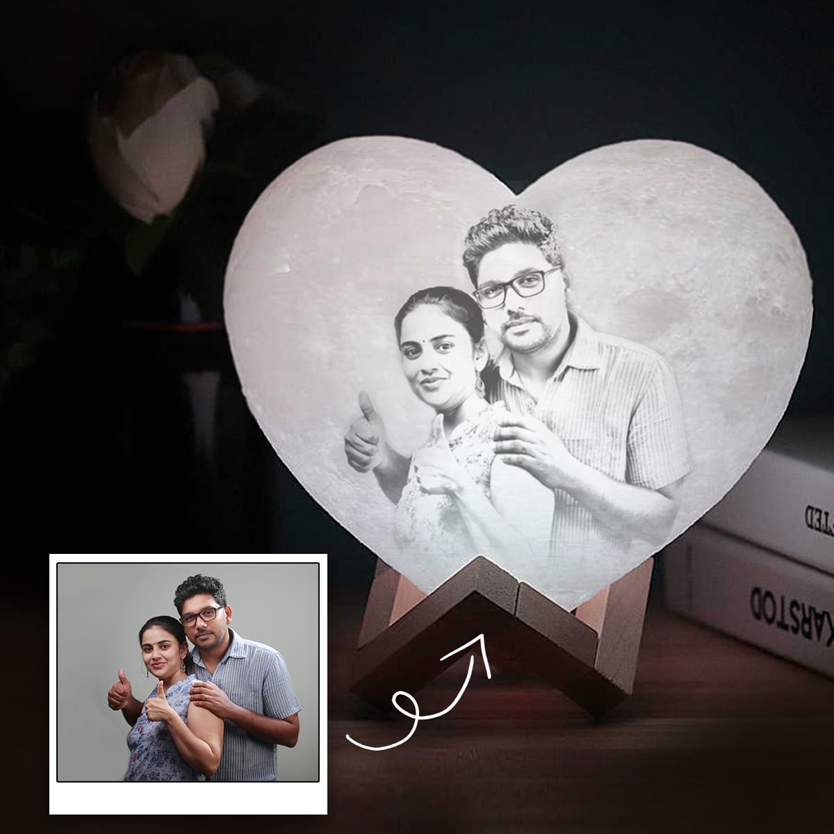 Are you looking for perfect valentine gift ideas? For the person who steals your heart every day, confess your love with the glowing heart lamp! The magic of customized, romantic gift is to feature the loving couple and a heartfelt message on the surface of the lamp, size being 15 x 15 x 7 cms.