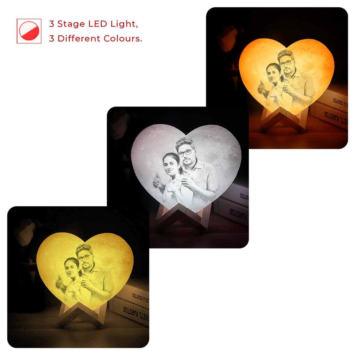 Personalised Heart Lamp 3 Colour Romantic Gift for Couples Valentine