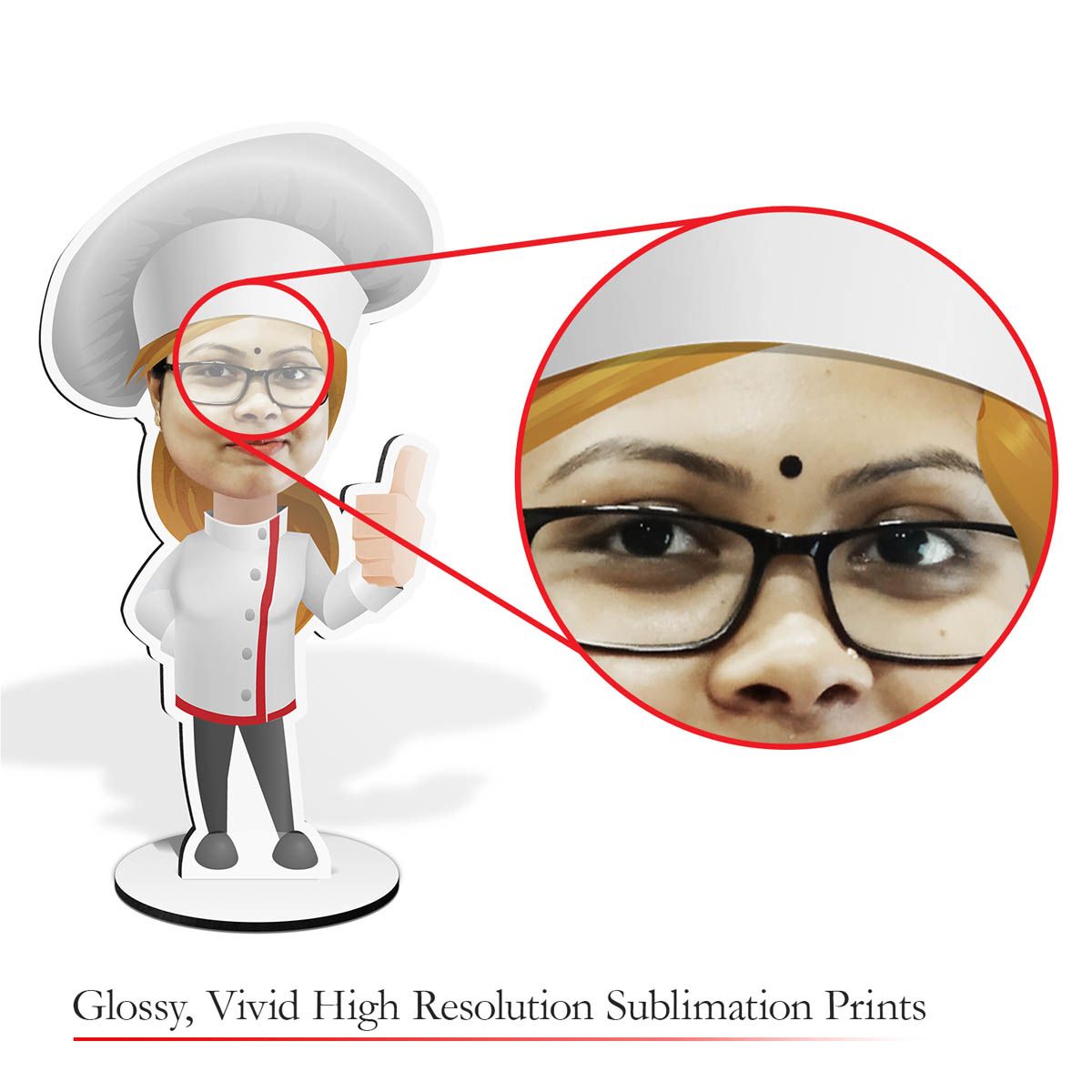 Personalised caricature printed on sublimatable hardboard cutout.