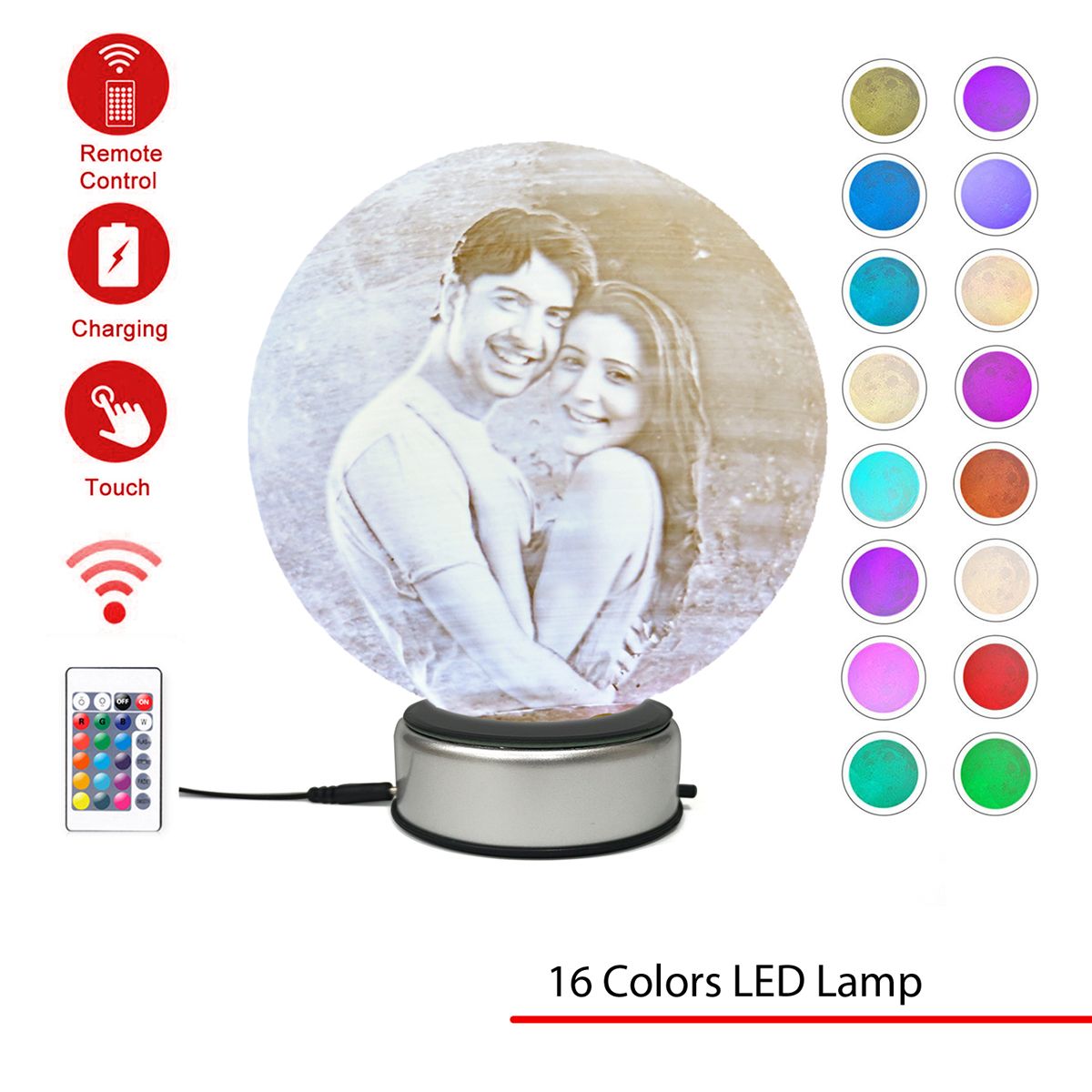 Personalised moon lamp 17cm Dia with 16color LED light and Rotating Base