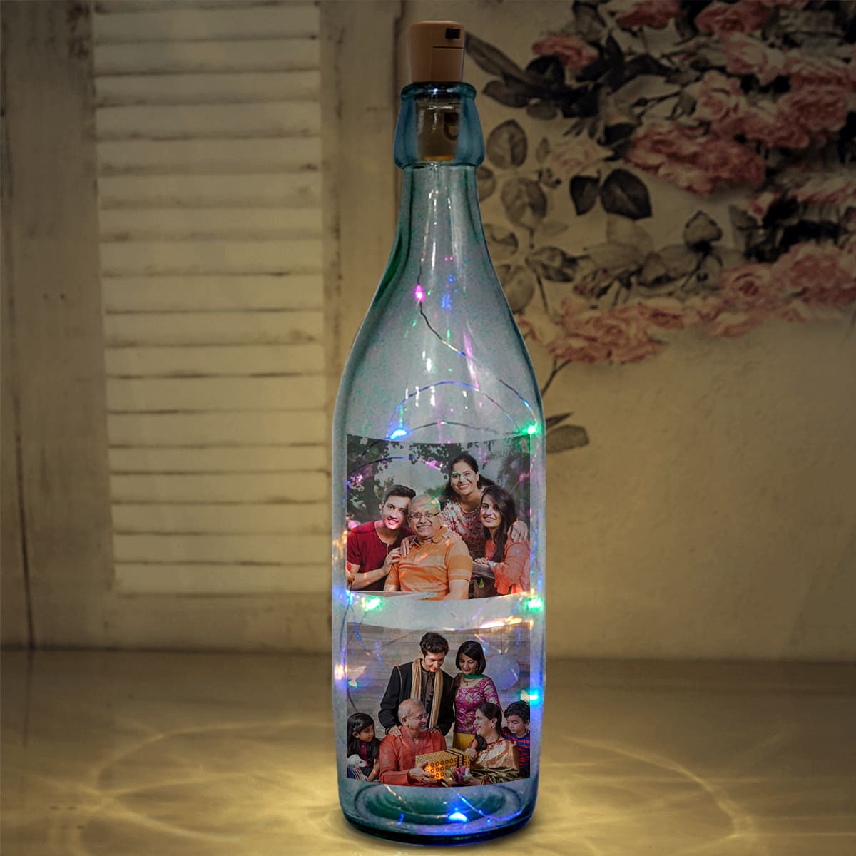 Light up your spaces and make the perfect mood with our glowing glass bottle personalized with your pictures.